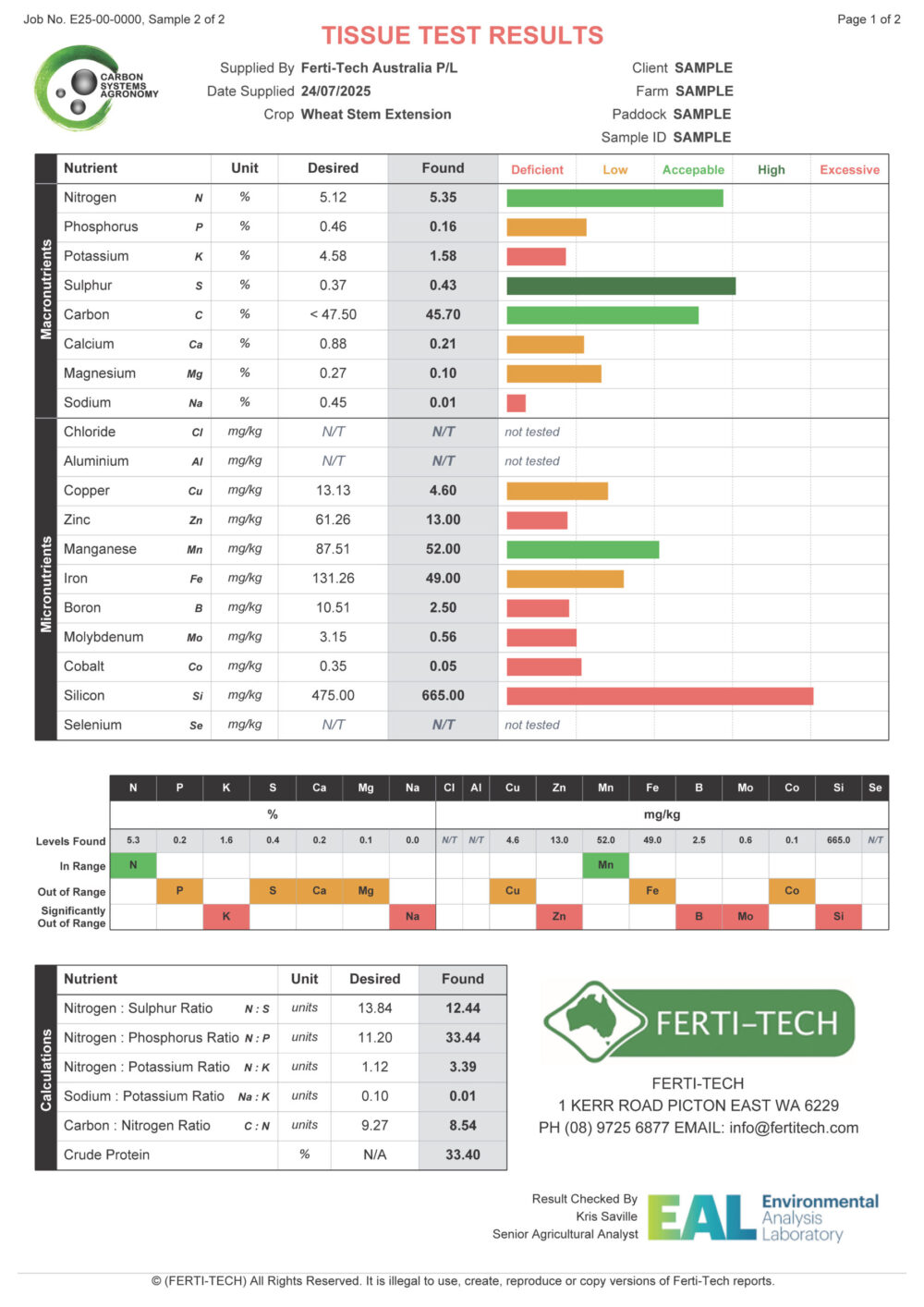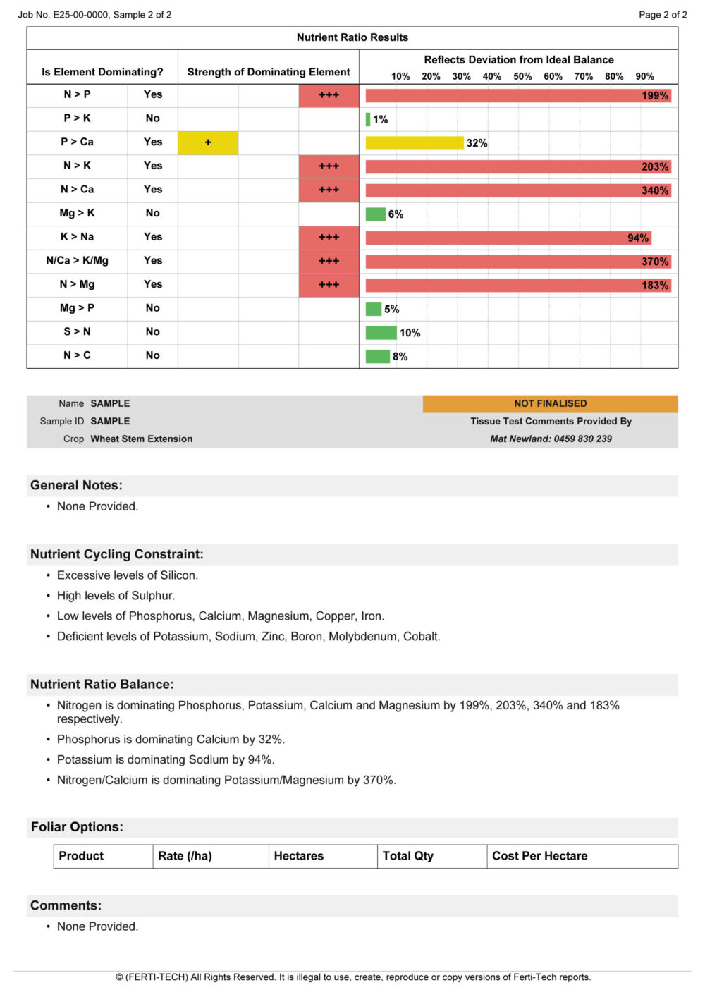 Nutrient Ratio Balance is far more important for health, vitality and for a better flowering and pollination event. The incorrect Foliar can induce too much green growth or throw vital ratios out of balance even more. Before deciding the final nutrient supply , see what is needed by taking Tissue Tests and make use of our CSA In-Field Inspection and Meter Testing for NO3, Ca, K, Na, Brix, Moister, Sap, EC.